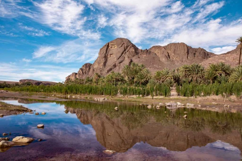 The Fint Oasis, located near Ouarzazate, is a magical place where palm trees, lush gardens, and arid mountains meet. This site is ideal for discovering traditional desert life and enjoying an idyllic natural setting.
