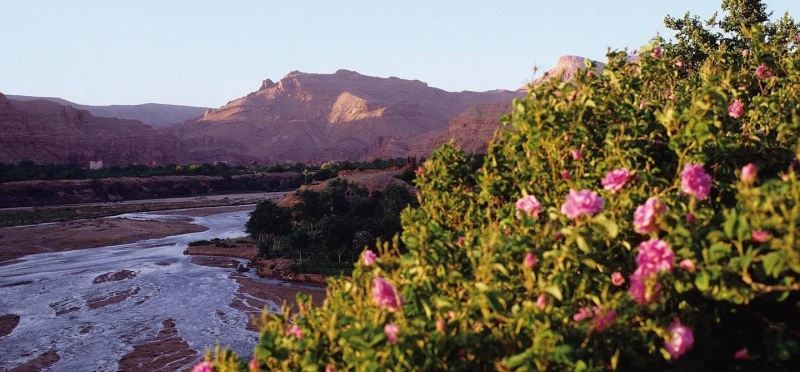 The Valley of the Roses, located at the foot of the High Atlas Mountains, is a magical place known for its rose plantations used in cosmetic products. This picturesque landscape offers breathtaking mountain views and is especially spectacular in spring during the rose harvest.